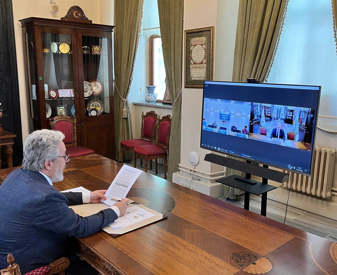 A cooperation agreement was signed at an online ceremony on 12 July 2024 between IRCICA Director General Prof. Mahmud Erol Kılıç on one hand, and on the other, Dr. Nor Imtihan binti Haji Abdul Razak, Acting Managing Director, Yayasan Sultan Haji Hassanal Bolkiah Foundation; Dr. Haji Norarfan bin Haji Zainal, Rector of Sultan Sharif Ali Islamic University; Prof. Madya Dr. Abdul Nasir bin Haji Abdul Rani, Ra’es, Seri Begawan Religious Teachers University College, towards jointly organizing the Brunei Darussalam International Islamic Calligraphy Festival 2024 to be held in October 2024. The ceremony was officiated by the Deputy Minister of Religious Affairs of Brunei Darussalam, Pengiran Dato Seri Paduka Haji Mohammad Tashim bin Pengiran Haji Hassan, an attended by Prof. Hamit Ersoy, Ambassador of Türkiye in Brunei Darussalam. The festival will include an international calligraphy forum, workshops of calligraphy and illumination, an exhibition, a spontaneous competition, and the finalization of the joint “IRCICA Regional Competition of Calligraphy in Asia 2024” that was launched in March 2024.