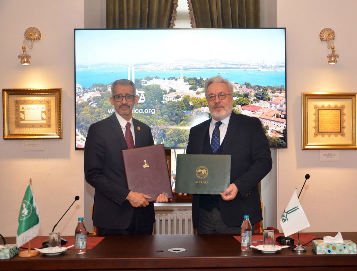 Un nouveau protocole d’accord de coopération couvrant les domaines des études sur l’histoire, des arts et de la préservation du patrimoine architectural a été signé entre l’IRCICA et l’Organisation arabe pour l’éducation, la culture et la science (ALECSO) lors de la visite de la délégation présidée par le Directeur général de l’ALECSO, le Dr. Mohamed Ould Amar au Directeur général de l’IRCICA, le Prof. Mahmud Erol Kılıç, le 17 février 2025. Étaient également présents aux entretiens les membres de la délégation de l’ALECSO Dr. Humaid Al Nofali, Directeur de la culture et M. Abdelhadi Ghemari, coordinateur des programmes, ainsi que Prof. Dr. Aboubacar A. Senghore, Député Directeur général de l’IRCICA, Prof. Cengiz Tomar, Chef des recherches et publications à l’IRCICA, et l’Ing. Amna Meddeb, responsable des médias. La délégation a également été guidée à la section des arts et à la bibliothèque.