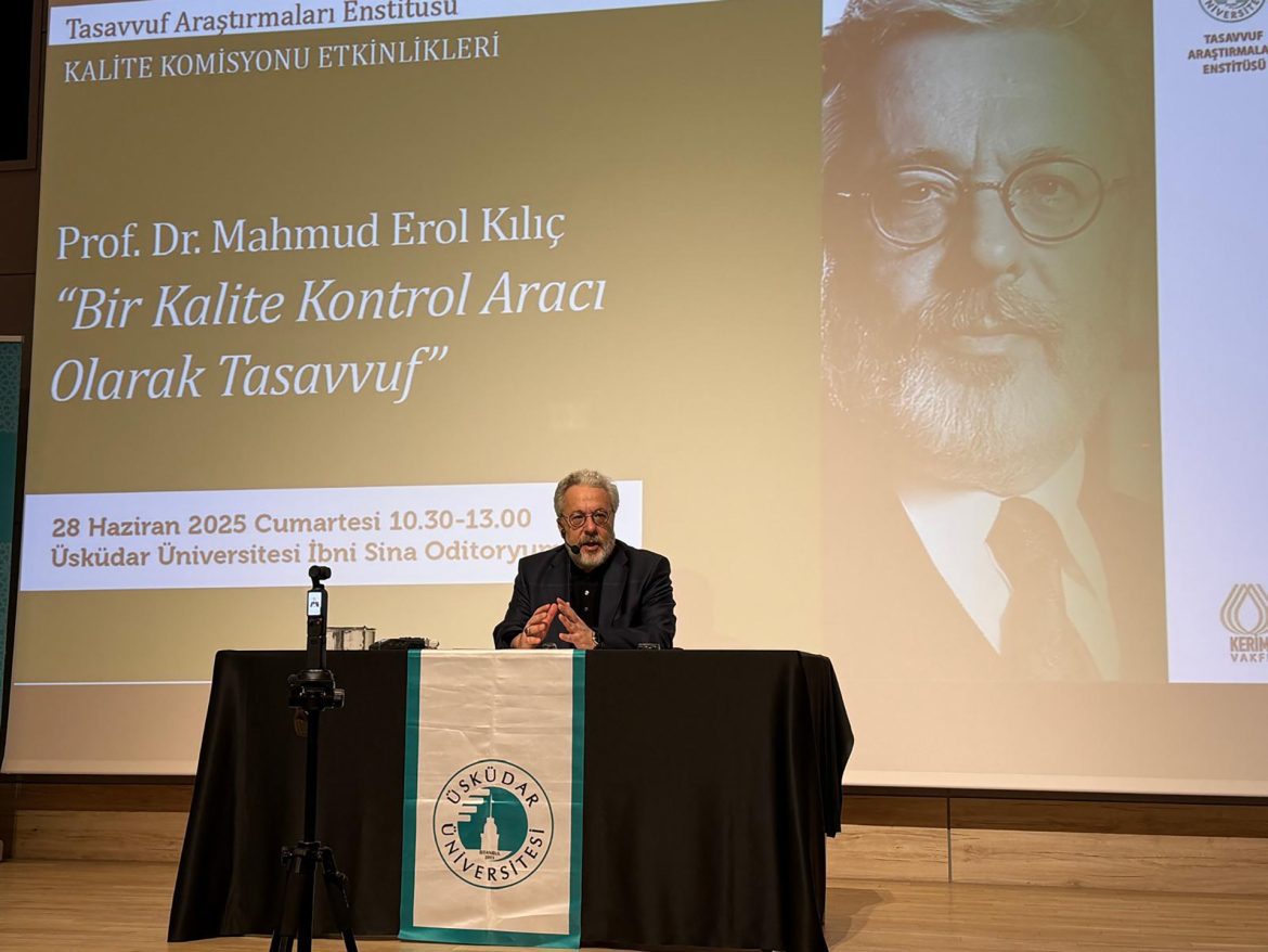 Le directeur général de l’IRCICA, le professeur Mahmud Erol Kılıç, a donné une conférence intitulée « Le tasawwuf comme outil de contrôle de la qualité » à l’Institut d’études soufies de l’université d’Üsküdar le 28 juin 2025. Le recteur fondateur de l’université d’Üsküdar, le professeur Nevzat Tarhan, a prononcé le discours d’ouverture, soulignant que les enseignements soufis se recoupent avec les objectifs adoptés par la communauté internationale pour construire la paix et l’entente. Mme Cemalnur Sargut, conseillère du recteur de l’université d’Üsküdar, a déclaré que l’institut travaillait sur l’enseignement des valeurs morales, même à l’intelligence artificielle, ce qui témoigne du niveau des études interdisciplinaires centrées sur le soufisme. Dans sa conférence, le professeur Mahmud Erol Kılıç a déclaré que selon la pensée soufie, les efforts d’une personne pour former et perfectionner son âme exigent qu’elle progresse en éliminant les obstacles entravant l’acquisition de certaines qualités. En avançant sur cette voie, il peut surmonter l’arrogance et atteindre la modestie, se purifier de l’ignorance et acquérir la connaissance, ainsi que d’autres qualités qui, malheureusement, perdent de leur importance dans l’environnement concurrentiel mondial d’aujourd’hui. Le professeur Kılıç a abordé la réflexion et les études interdisciplinaires qui révèlent cette relation fondamentale entre le soufisme et les qualités humaines et a également fait référence aux projets menés sur ce sujet à l’université d’Üsküdar.