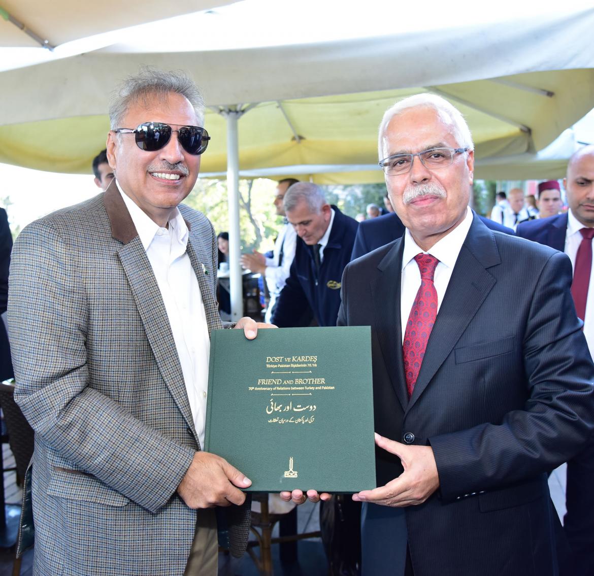 Dr. Eren a présenté au Président du Pakistan un album de photographies intitulé “Friend and Brother: 70th Anniversary of Relations between Turkey and Pakistan” publié à l’occasion de la 70e année des relations entre le Pakistan et la Turquie. L’album avait été préparé par l’IRCICA et le Ministère des Affaires Etrangères de la Turquie. Il comporte une Préface par le Président de la Turquie, S.E.M. Recep Tayyip Erdoğan. Il contient les reproductions de documents historiques, de photographies de rencontres diplomatiques et de timbres postaux commémoartifs. Les matériels avaient été compilés à partir des archives de l’IRCICA. Dans l’ensemble, ils donnent un aperçu de l’amitié exemplaire entre les deux pays.