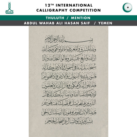 IRCICA 12th International Calligraphy Competition by admin 21 May 2022 21 May 2022 3.3K FacebookTwitterLinkedinWhatsappTelegramEmail Other Articles IRCICA 11th International Calligraphy Competition 20 April 2019