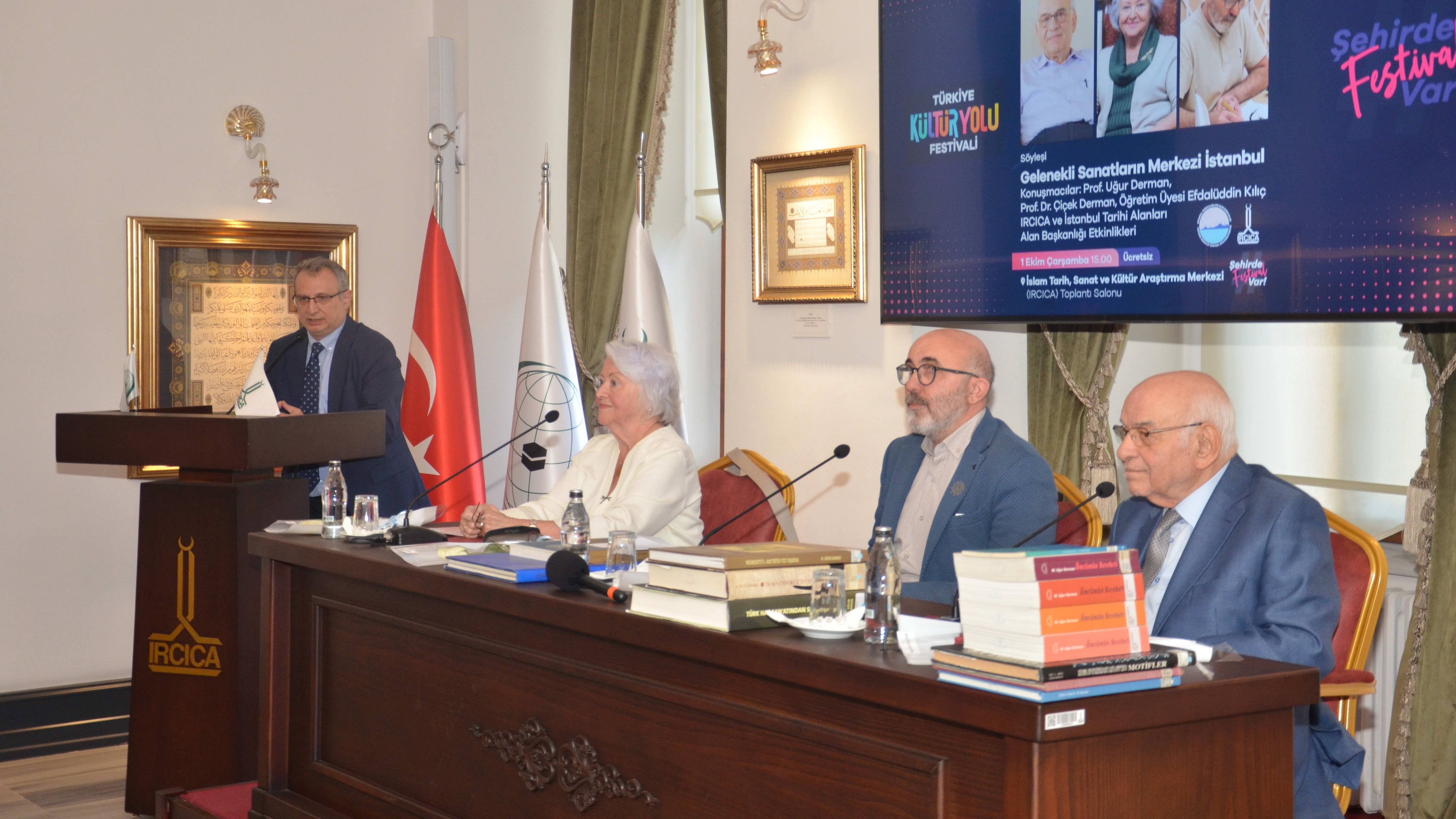 Hat sanatı uzmanı Prof. Dr. Uğur Derman ve tezhip sanatı uzmanı Prof. Dr. Çiçek Derman’ın konuşmalarıyla hat ustası ve hocası Sn. Efdaluddin Kılıç moderatörlüğünde gerçekleştirilen “Gelenekli Sanatların Merkezi İstanbul” Söyleşisi İstanbul Tarih Alanları Alan Başkanlığı ve IRCICA işbirliğinde 1 Ekim 2025’te IRCICA’da düzenlenmiştir. T.C. Kültür ve Turizm Bakanlığı, Kültür Yolu Festivali çerçevesinde, İstanbul’un UNESCO Dünya Mirası Listesine kaydedilişinin 40. Yılı vesilesiyle gerçekleştirilen etkinlikte IRCICA’da 27 Eylül-5 Ekim 2025 arasında yer alan sergi de sunulmuştur. Etkinlik İstanbul Tarih Alanları Alan Başkanı Sn. M. Mustafa Tural’ın İstanbul’un UNESCO Dünya Mirası Listesine kaydediliş süreci ve bununla ilgili günümüzdeki çalışmalar üzerine konuşması ve belgesel film gösterimiyle tamamlanmıştır.