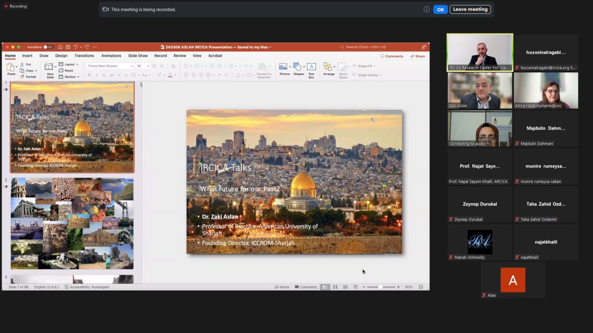IRCICA Kültürel Miras Konuşmaları’nın 6 Mart 2024’teki “Mirası Korumak: Kültürel Mirasın Güncel Meseleleri” başlıklı çevrimiçi panelinde Bosna-Hersek’ten Dr. Amra Hadzimuhamedović ve BAE, Şarika’dan Dr. Zaki Aslan’ın sunumları yer aldı. Panele çeşitli ülkelerde kültürel mirasın korunması alanında çalışan araştırmacılar da katılarak soru-cevap görüşmelerine katkıda bulundular.